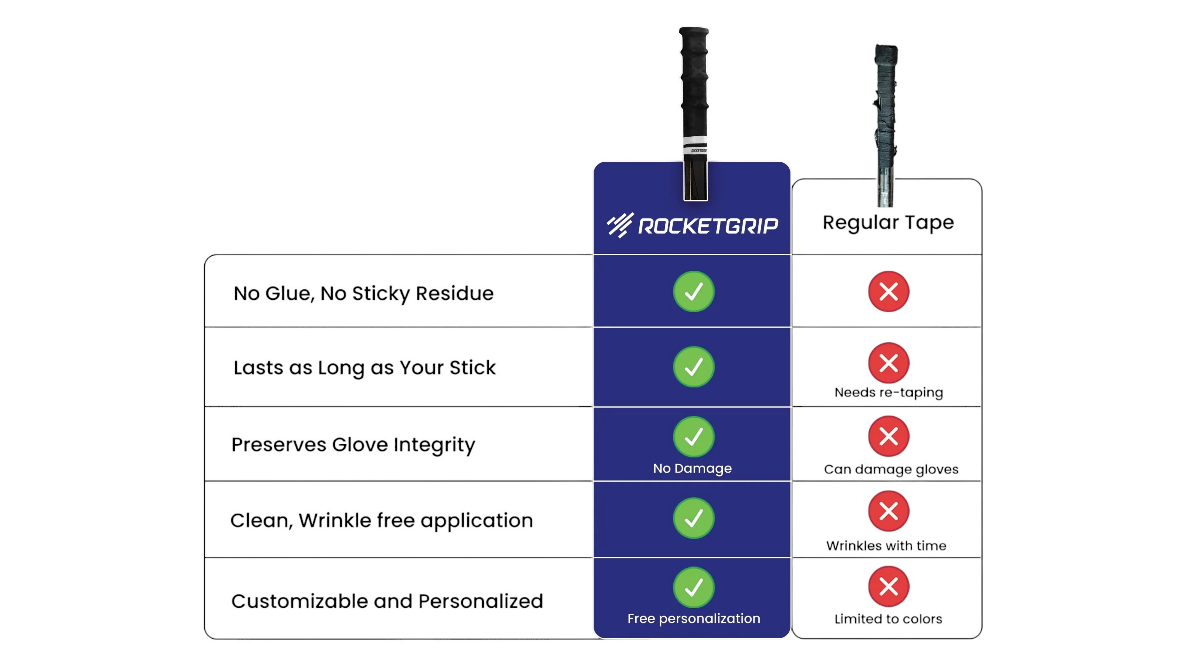 Dì addio al nastro che si rovina dopo poche partite! Con RocketGrip ottieni una presa personalizzata, resistente e duratura che protegge i tuoi guanti e migliora le tue prestazioni sul ghiaccio.